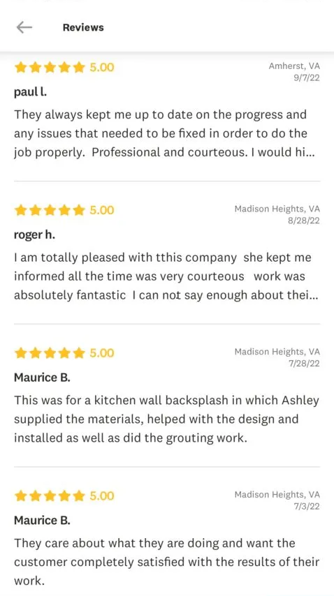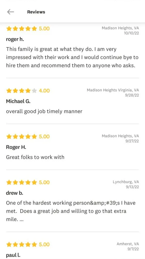 I am a female contractor and business owner for 5+ years. I have a lifetime of experience, give free estimates, and the lowest prices guaranteed. I will not leave you until you are 100% satisfied with our service. I'm certified in disaster recovery and mold/water/fire damage, so you are in excellent hands if your in our hands.